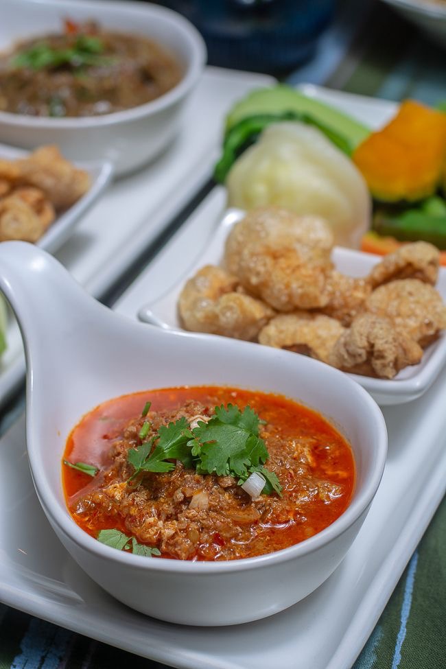 นึกถึงเมนูอาหารเหนือที่เชียงใหม่ก็ห้ามพลาดเมนูน้ำเงี้ยวอย่างแน่นอน โดยเฉพาะเมนูขนมจีนน้ำเงี้ยวที่ใครต่อใครได้ทานก็ตกหลุมรักไปตาม ๆ กัน เพราะในน้ำเงี้ยวมีทั้งเนื้อหมูนุ่ม ๆ เลือดไก่ต้มพูน ๆ น้ำแกงข้น ๆ และที่ขาดไม่ได้ก็คือดอกงิ้ว แค่จานเดียวก็ได้รสสัมผัสถึงกลิ่นไออาหารเหนือแท้ ๆ